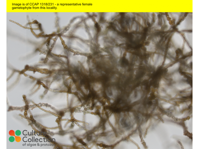 | Notes | Isolated by micropipetting/pipetting, identified by morphology. Culture has not been treated with antibiotics or UV irradiation; female; Collected as part of GENIALG project, isolated at SAMS; the sex of the gametophyte has been determined by morphology and PCR; This macroalgal culture contains bacteria and probably other organisms in low numbers, we are happy to provide further info on specific strains if you contact us |