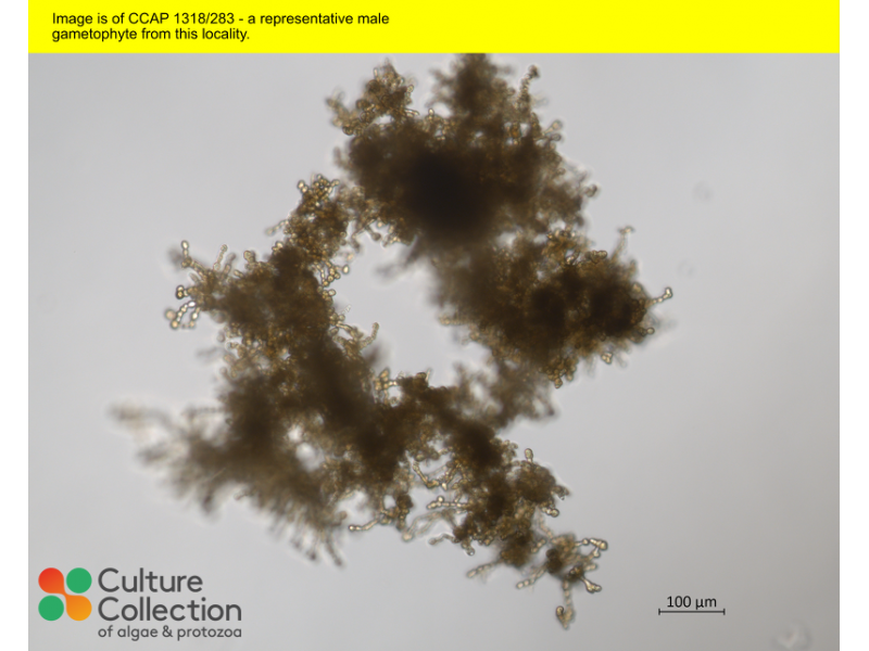 | Notes | Isolated by micropipetting/pipetting, identified by morphology. Culture has not been treated with antibiotics or UV irradiation; male; Collected as part of GENIALG project, isolated at SAMS; the sex of the gametophyte has been determined by morphology and PCR; This macroalgal culture contains bacteria and probably other organisms in low numbers, we are happy to provide further info on specific strains if you contact us |